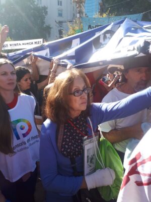 En abierta contradicción con la tibieza o el silencio de los referentes políticos, los oradores repudiaron el plan de guerra imperialista de los EEUU y la masacre sistemática desarrollada por Israel en Palestina El documento final leído por Estela de Carloto denunció el negacionismo oficial y la reivindicación del terrorismo estatal y la desfinanciación de los organismos de DDHH