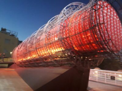 Disfrutamos de la impactante muestra de arte argentino del siglo XIX en Bellas Artes, especialmente la colección Derrico y la obra clásica de Prilidiano Pueyrredón (ver fotos) y nos cruzamos al Centro Cultural Recoleta que pudimos apreciar con una nueva mirada después de presenciar una entrevista a su creador Clorindo Testa que secundado por Jaques Bedel y Luis Benedit reciclaron el antiguo asilo de indigentes construido en tiempos del Intendente Torcuato de Alvear a partir de un convento franciscano del siglo XVIII En la terraza visitamos la Torre de Pisa de tallarines creada por Marta Minujin (foto) una versión adaptada a estos tiempos de ajuste de sus instalaciones monumentales. En la Capilla construida por Juan A Buschiazzo declarada monumento histórico nacional escuchamos un estupendo recital pop-rock a cargo de Melina Mogilevsky (foto) de la dinastía de músicos nacida entre los gauchos judíos entrerrianos. . Para rematar la noche estuvimos en la Sala Cronopios para ver la expo Paisanaje de Madrid compuesta por la campaña alimentaria de un colectivo que enfrenta la emergencia ecosocial a través del arte y también de la militancia solidaria con los excluidos del sistema Una fiesta de principio a fin (ver todas las fotos)