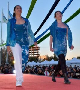 Entre las diversas marcas presentadas en el evento, se lució Magia Azul ( ver fotos) de nuestra artista visual y reportera gráfica Moni Melián que exhibió sus livianas prendas índigo intervenidas con la técnica fotográfica de cianotipia, muy aplaudida por el numeroso público que soportó el fuerte viento de agosto para seguir la muestra y recorrer los Strands de emprendedores de la cultura provincial