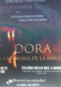 El mismo Alejandro interpreta a un movedizo chaman puntano en la proyección del film «Dora-La Memoria de la Magia» realizado por la Orquesta que él dirige sobre la maestra rural e investigadora Dora Ochoa de Masramón.